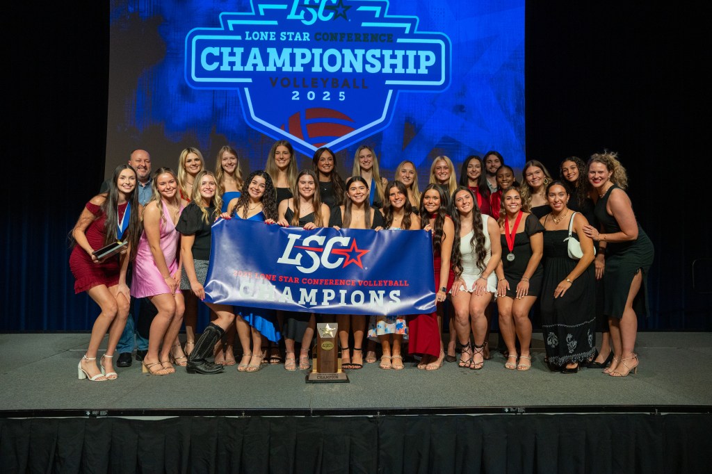 The Angelo State volleyball team, ahead of the 2025 Lone Star Conference Tournament inside the Junell Center/Stephens Arena, claimed nine all-conference awards, the LSC revealed at their banquet this evening inside the CJ Davidson Ballroom in the Houston Harte University Center.